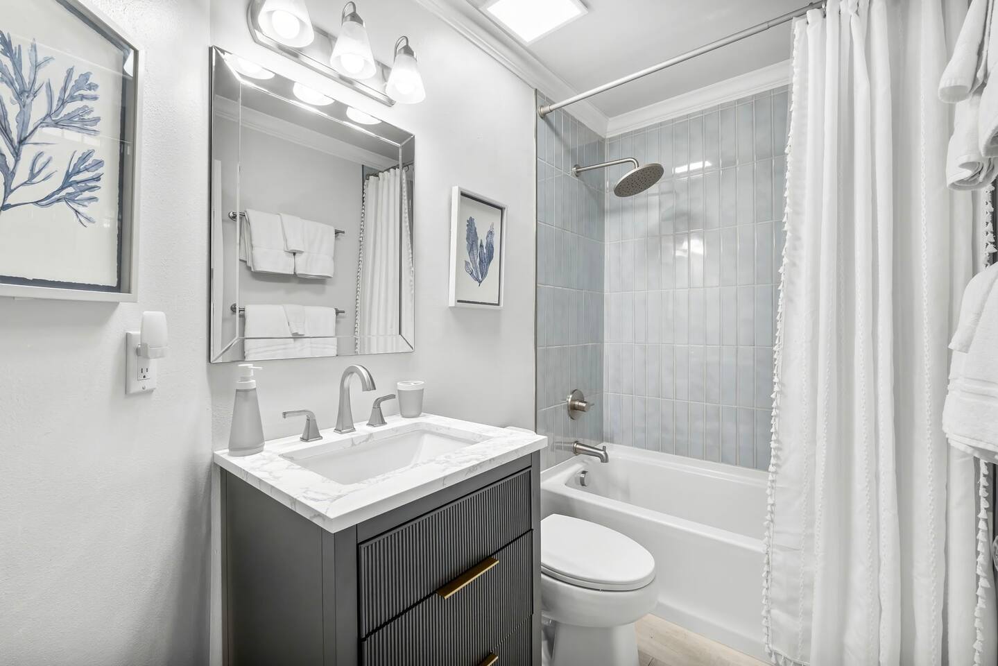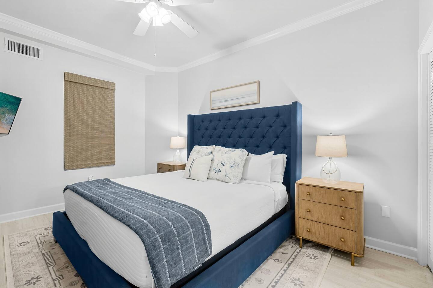 “Reel Paradise 30a” is an updated ground floor unit that sits just off the pool deck and is only steps from the private beach. Located on the quiet west end of 30A in Blue Mountain Beach and walkable to many eateries! Beach service of 2 chairs, 1 table and 1 umbrella included in March - October reservations! MAIN AREAS - Fully stocked kitchen with Keurig and 12-cup Coffee Maker - Double ice maker in refrigerator - Bar seating for 4, seating at dining table for 6 plus an extra table with seating for 4 - Large living area with plenty of seating and a 65” TV BEDROOMS/ BATHROOMS Primary Bedroom | King Bed (sleeps 2) with ensuite bathroom and 50” smart TV - Master bathroom with double vanities, soaker tub and large shower Bedroom 2 | King Bed (sleeps 2) with ensuite bathroom (shower only, tub being removed) and 43” smart TV Bedroom 3 | Full over King (sleeps 5 kids or 3 adults) with hallway bathroom and 43” smart TV FAMILY-FRIENDLY - Kid items included: pack n play, high-chair, booster seat, kid-friendly dishes, step stool o Additional items available for rent through a 3rd party - Books, puzzles and games BEACH - Private beach access and private beach directly off back patio - Professional Beach chair setup with 2 chairs, a table and umbrella included - 4 extra backpack chairs and cooler available for guest use - Beach towels for 8 for guests - Sand toys BUILDING AMENTIES - Hot tub and Pool (seasonally heated November – mid-April) – condo patio right off pool deck - Parking for two cars (one under covered parking deck, second in our overflow lot) - Parking pass for 3rd vehicle available upon request - Basketball court - Fitness Center - Outdoor grilling area with Weber gas grill OTHER HIGHLIGHTS - A starter pack of paper products, dishwasher pods, laundry pods and trash bags are provided for your stay. - 15 minutes from Public Pickleball Courts RESTAURANTS WITHIN WALKING DISTANCE Mimmo’s Italian, Thai 30A, Cowgirl Kitchen, Blue Mountain Bakery, Red Fish Taco, Johnny McTighe’s Irish Pub, Boxcar Sally Blue Mtn Creamy (ice cream) Coffee Shoppe 30A For the Health of it (grocery) IMPORTANT ADDITIONAL INFORMATION - Check in 4 P.M., check out 10 A.M. - Cancelation Policy: Travelers who cancel at least 60 days before check-in will get back 100% of the amount they've paid. If they cancel between 30 and 60 days before check-in, they'll get back 50%. Within 30 days, no refund will be given. Travel insurance is highly recommended to protect your investment. o Tents not allowed on beach (umbrellas only) o Guests are required to sign a separate rental agreement with the owners and provide a copy of the of their driver’s license o NO PETS - we are unable to accommodate any animals due to severe allergies o Renter must be 25 years or older o Home is protected by Nest Doorbell camera and building has 24/7 surveillance. Reel Paradise is lovingly owner-managed. AIRPORT INFORMATION Northwest Florida Beaches International Airport (ECP) is located in Panama City and is approximately 40 minutes from the condo. Destin-Fort Walton Beach Airport (VPS) is located in Destin and is approximately 60 minutes from the condo. If flying into 30a, we highly recommend setting up transportation prior to your arrival. On demand car services (Uber/Lyft) are often not available.