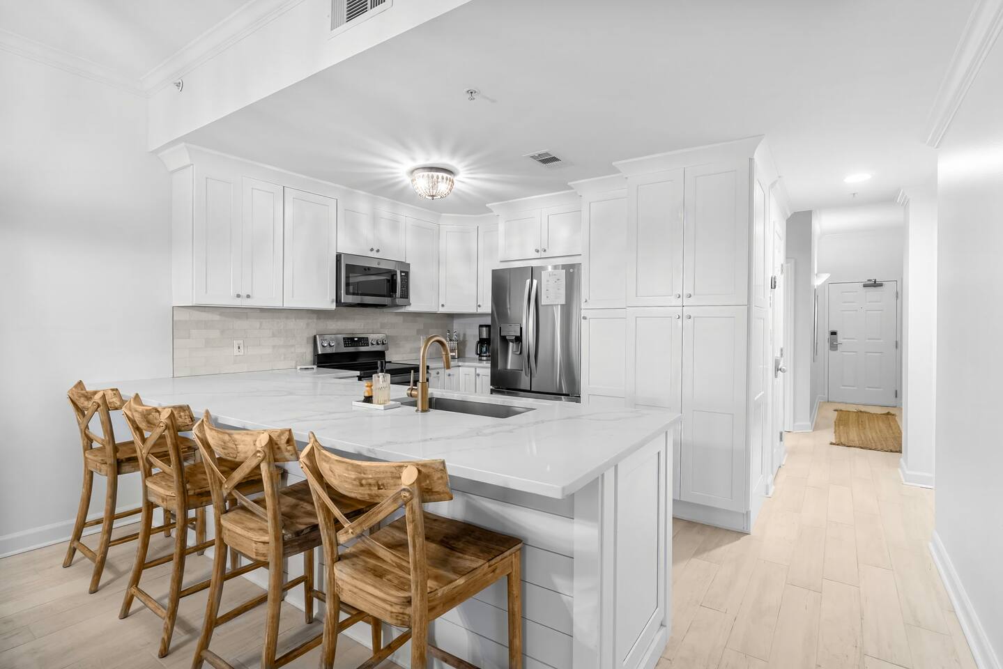 ★Gulf Front ★Recently Renovated ★Private Beach ★Chairs Included ★Baby Gear ★Pickleball nearby ★Hot Tub ★Pool ★3 King Beds ★Updated Bathrooms ★Walkable Dining ★ Gym ★High Speed Internet